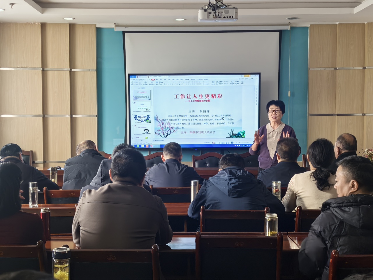 为深入贯彻落实《中国共产党思想政治工作条例》,切实把思想政治工作与关爱干部职工身心健康紧密结合起来,进一步加强干部职工队伍建设、提升履职效能。近日,市残联举办干部职工思想政治教育暨心理健康教育专题辅导讲座,邀请国家二级心理咨询师张丽萍作专题辅导。机关及下属事业单位全体干部职参加。
