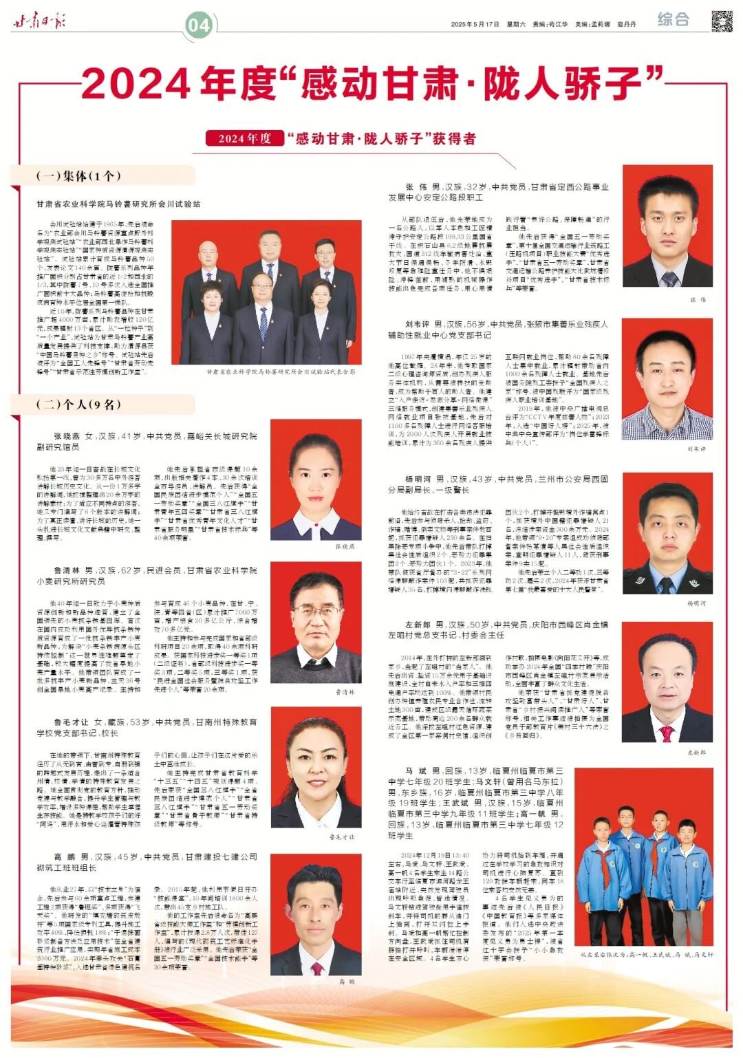 图为2024年度“感动甘肃·陇人骄子”获得者(右二为刘韦评)。