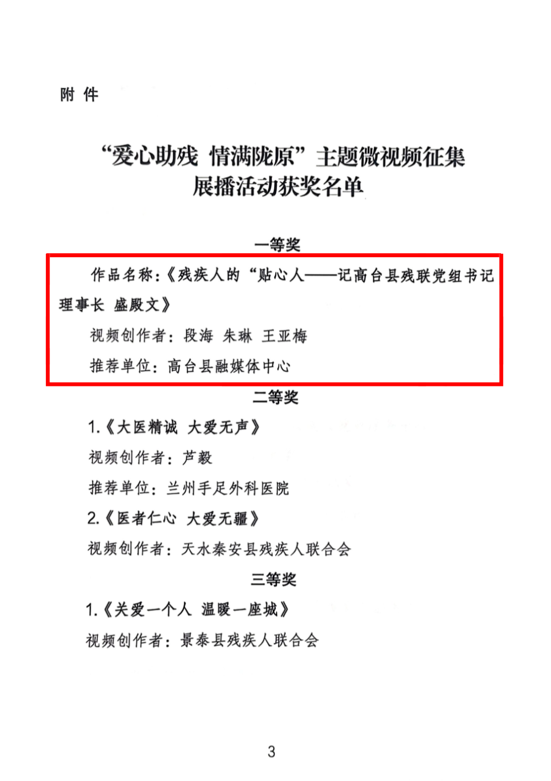 图为全省“爱心助残 情满陇原”主题微视频征集展播活动中我市获奖作品。