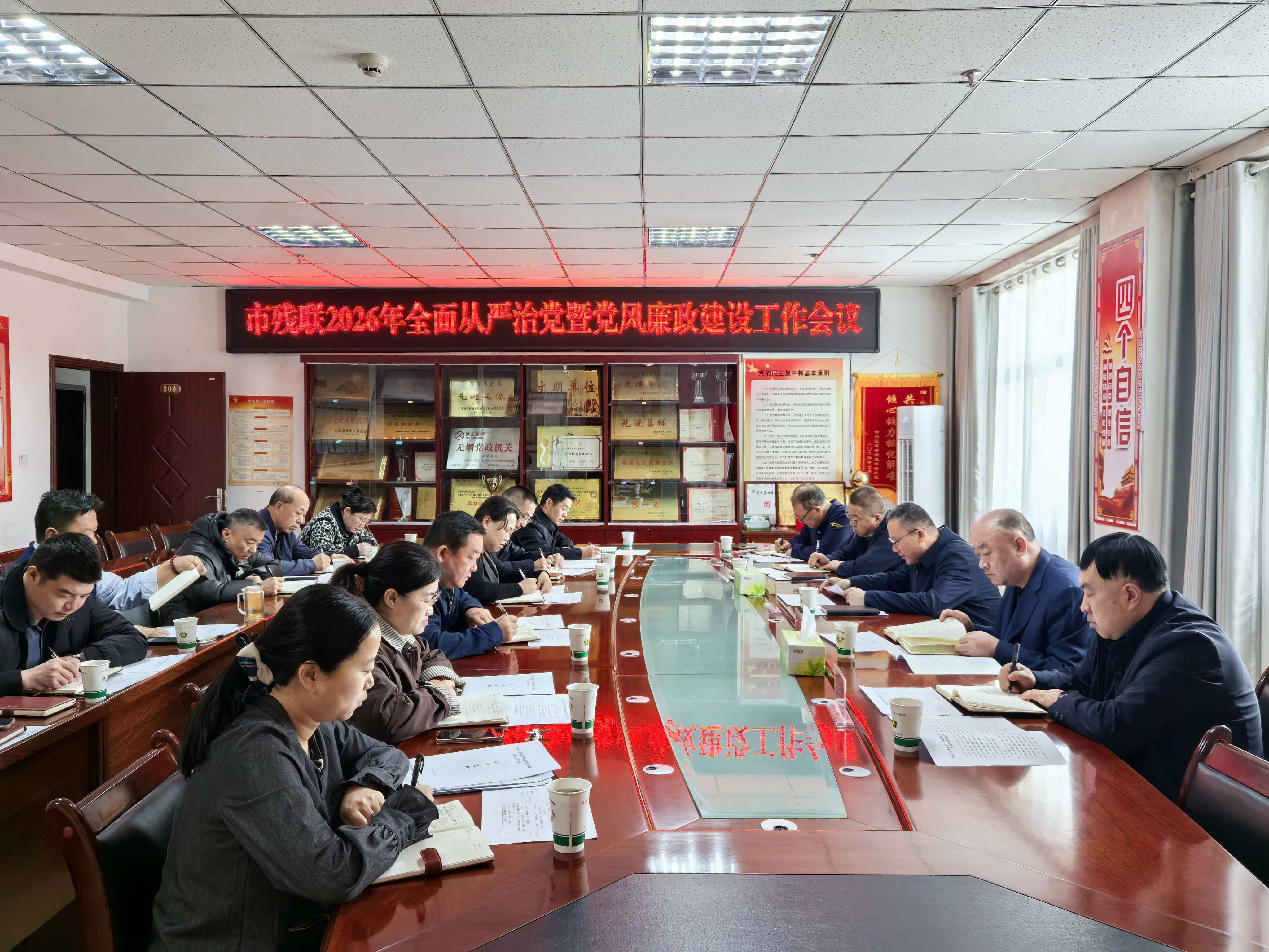 会议强调,要准确把握形势,锚定重点任务,在守正创新、久久为功中推动全面从严治党向纵深发展,为“十五五”良好开局提供坚强纪律作风保障。要深化理论武装强信念,严守政治纪律守规矩,做实政治监督保落实,把讲政治贯穿于党风廉政建设全过程、各方面,以绝对忠诚引领残疾人事业发展;要厚植廉洁文化底蕴,常态化开展党纪教育,打造残联特色廉洁文化品牌,让廉洁文化浸润人心、入脑入心;要深入排查整治廉政风险,规范项目资金管理使用,健全权力运行监督机制,坚决把牢风险防控关口;要锤炼务实过硬作风,扎实开展树立和践行正确政绩观学习教育,持续深化“三抓三促”行动,做实做细民生服务保障工作,用心用情解决残疾人急难愁盼问题;要扛牢管党治党责任,凝聚监督执纪合力,推进清廉机关建设,以严实作风保障各项工作落实到位。