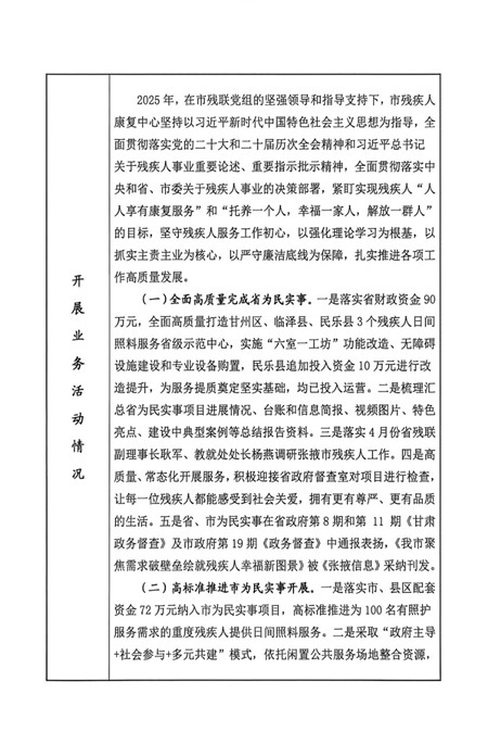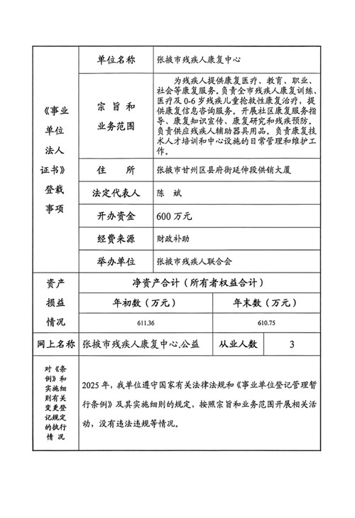 2026年张掖市残疾人康复中心事业单位法人年度报告书